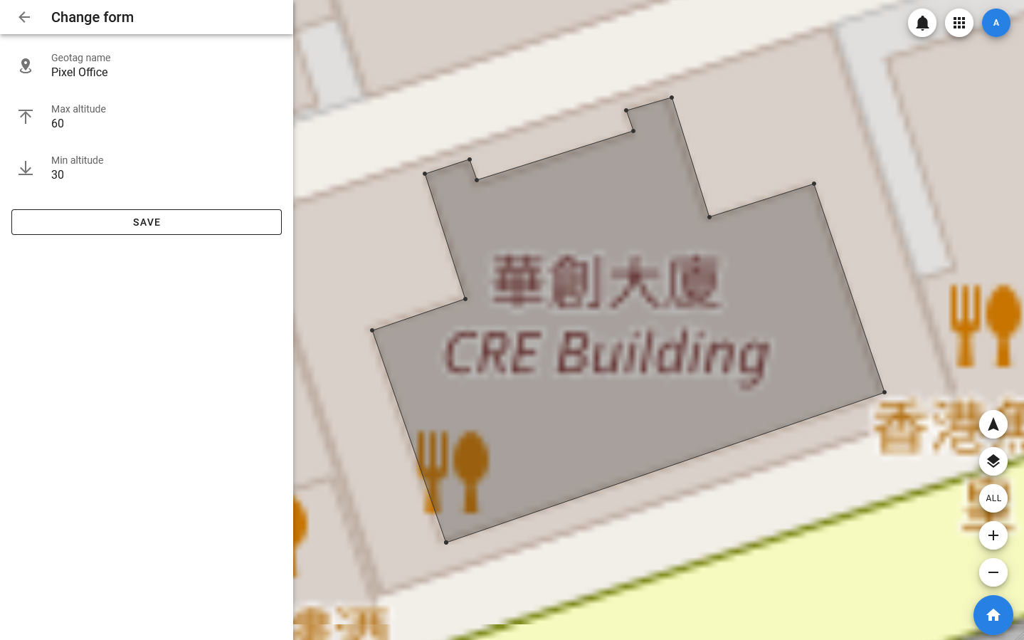 - In the modal window that opens, specify the name of the geotag, its height, address, image.