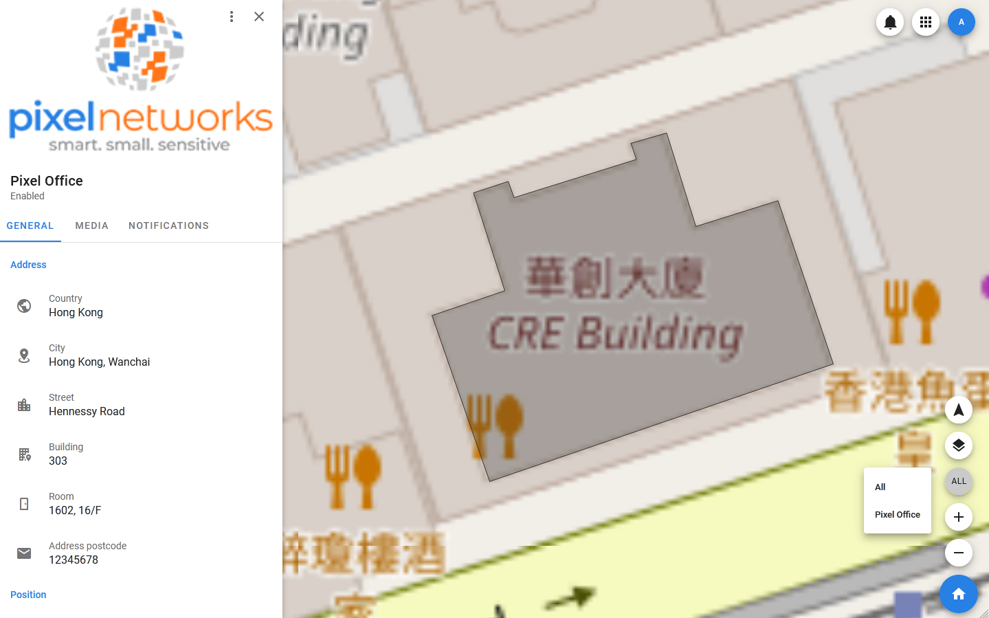 A geotag is a special object that allows you to manage addresses. A geotag is a direct prism that serves to define a space that has a specific address: a building, a separate floor or an office. The addresses of objects and other elements of the system are determined by which geotags they are located inside.