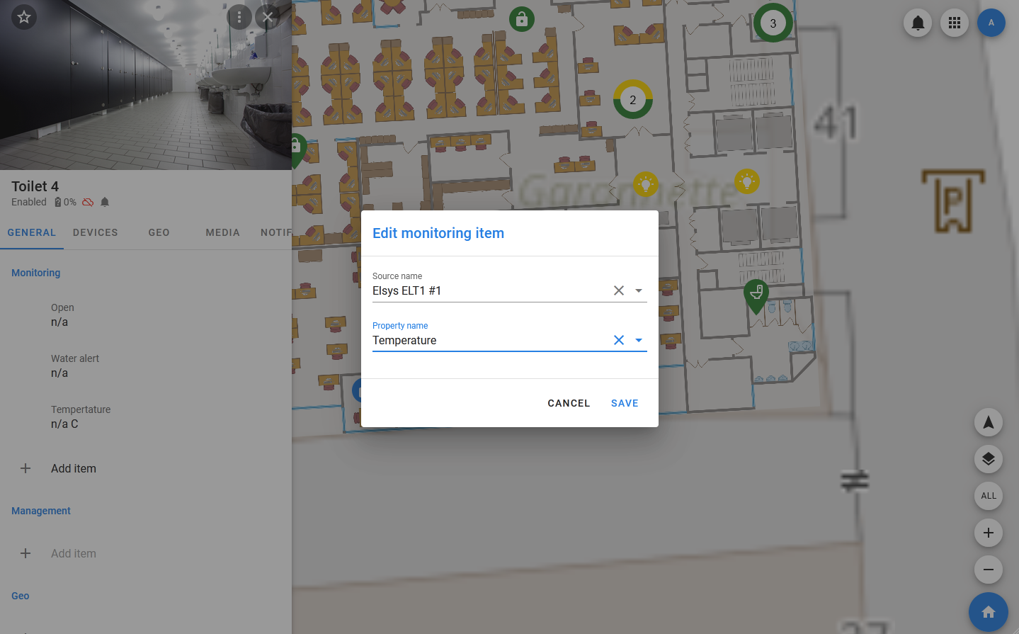 Any other system objects, primarily devices and datasets, can be linked to the Pixel Monitor object. You can use this if several devices monitor the state of an object from the real world: although the changes will have different sources, in a Pixel Monitor you will be able to represent them so that they relate to the same object